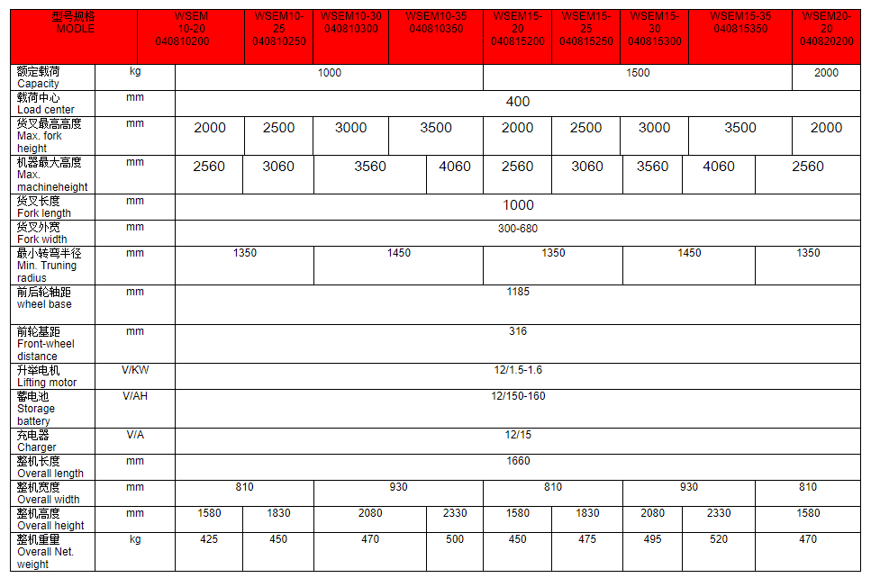 WSEM系列雙門(mén)架半電動(dòng)堆高車(chē)