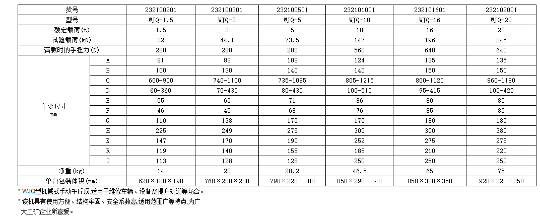 機(jī)械式千斤頂WJQ系列