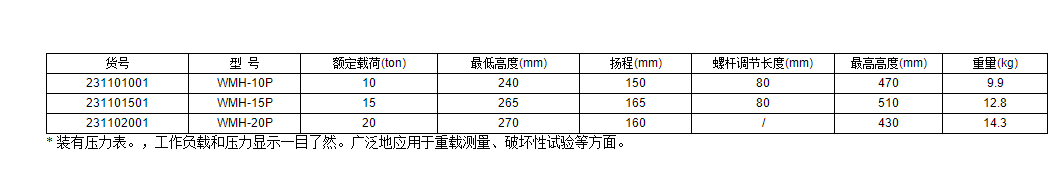 帶壓力表油壓千斤頂WMH-20P