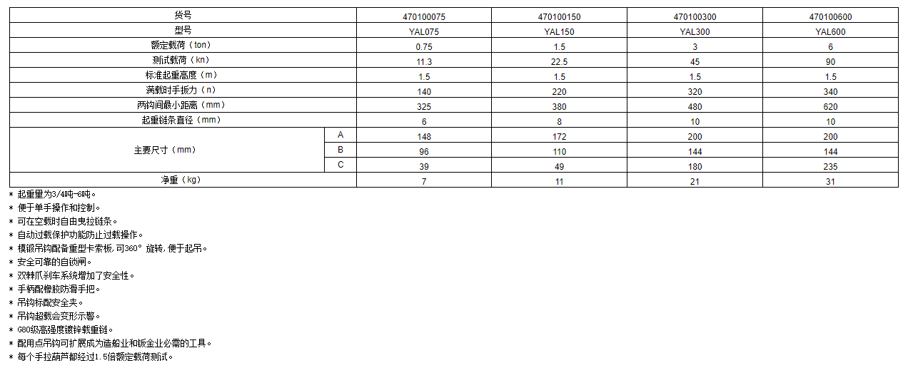 YAL型手板葫蘆