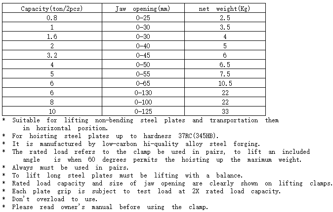 Steel Plate Lifting Clamp